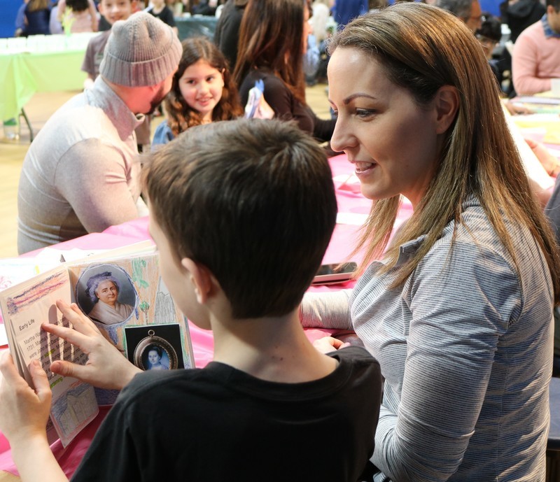Each year, as part of a non-fiction unit, third graders at Washington Elementary School research and write a biography about an influential woman in history. To celebrate and showcase their work during Women’s History Month, the students invite a special person in their lives to a tea party.