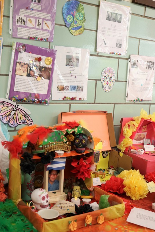 At Edison, student-created displays, or ofrendas, blended the traditions of the holiday with traditions of their own to honor a family member who has died. Some students celebrated the life of a pet or a well-known person as well.