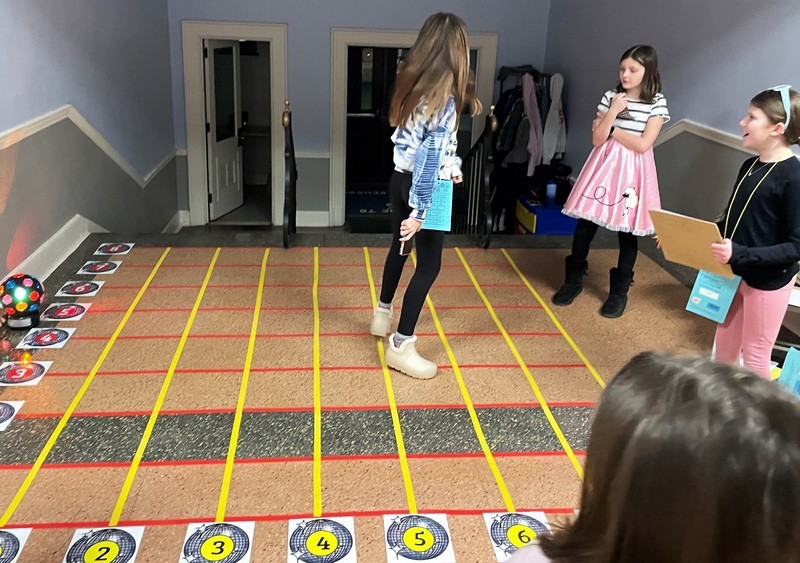 Pop culture from the 1940s through the 1990s was the theme at Franklin Elementary School’s 14th Annual Math Night on February 9. Franklin students and their families rotated between stations at “Math through the Decades” with games that included “Will It Form a Cube?,” the “Pac Man Mirror Maze," a “Disco Dance Coordinate Grid,” and “Tangrams are Groovy.”
