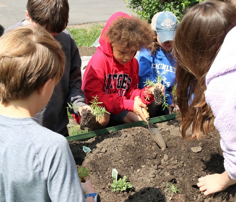 Fourth graders at McKinley Elementary School planted a pollinator garden on May 18, with the help of Groundworks Elizabeth educator Jackie Park Albaum and a “Kids Dig In” grant from Union County’s “Plant a Seed” garden grant program. McKinley paraprofessional Donna Dwyer and secretary Julie Fetter have successfully applied for the grant for several years.